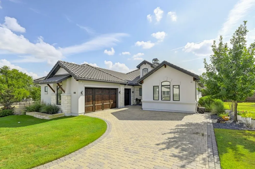 Custom built lock-n-leave home, situated on 2 lots, in the newer gated community of The Enclave at Barton Creek Lakeside. This small intimate community is situated on 10 acres with 40 home sites, and is tucked in between both gated entrances of Barton Creek Lakeside. Built by one of the finest builders in the area, Toscana Homes and Properties, the attention to detail exudes with quality features and appliances throughout. This community was designed with 6 original floorplans to choose from with high quality finishes and a spray foam insulation for a sealed envelope efficiency. This home is unique in that it is on 2 lots, allowing for a side yard with an outdoor kitchen, firepit, retractable awnings, and a stone patio space, perfect for outdoor entertaining or just enjoying the outdoors. Inside you will find high end Wolf appliances, a Miele built in coffee maker, Sub-Zero refrigerator, brand new water softener and reverse osmosis system, security camera system inside and out, central vacuum system, sound system throughout, and a climate-controlled wine room with a beautiful iron door entry. Primary suite includes a large walk-in shower, heated towel racks and 2 separate sinks. Front guest room has an un-suite with a steam shower. Office area is located near the primary bedroom. No carpet, tile and wood floors that are easy to maintain. Washer, dryer, laundry room refrigerator, sound system and cameras all convey. Some furniture is negotiable. Monthly dues cover high speed internet, trash service, lawn care, as well as gate and common area maintenance. Perfect lock-n-leave or full-time residence. Accessing the private country club of Barton Creek Lakeside, is a breeze, with a private golf cart path, directly to the club. Membership is voluntary but well worth having. Full golf membership includes an 18-hole Arnold Palmer designed golf course, private club w/ dining, pool, fitness center, and tennis/pickle ball courts. Hard to find this quality in this price range!